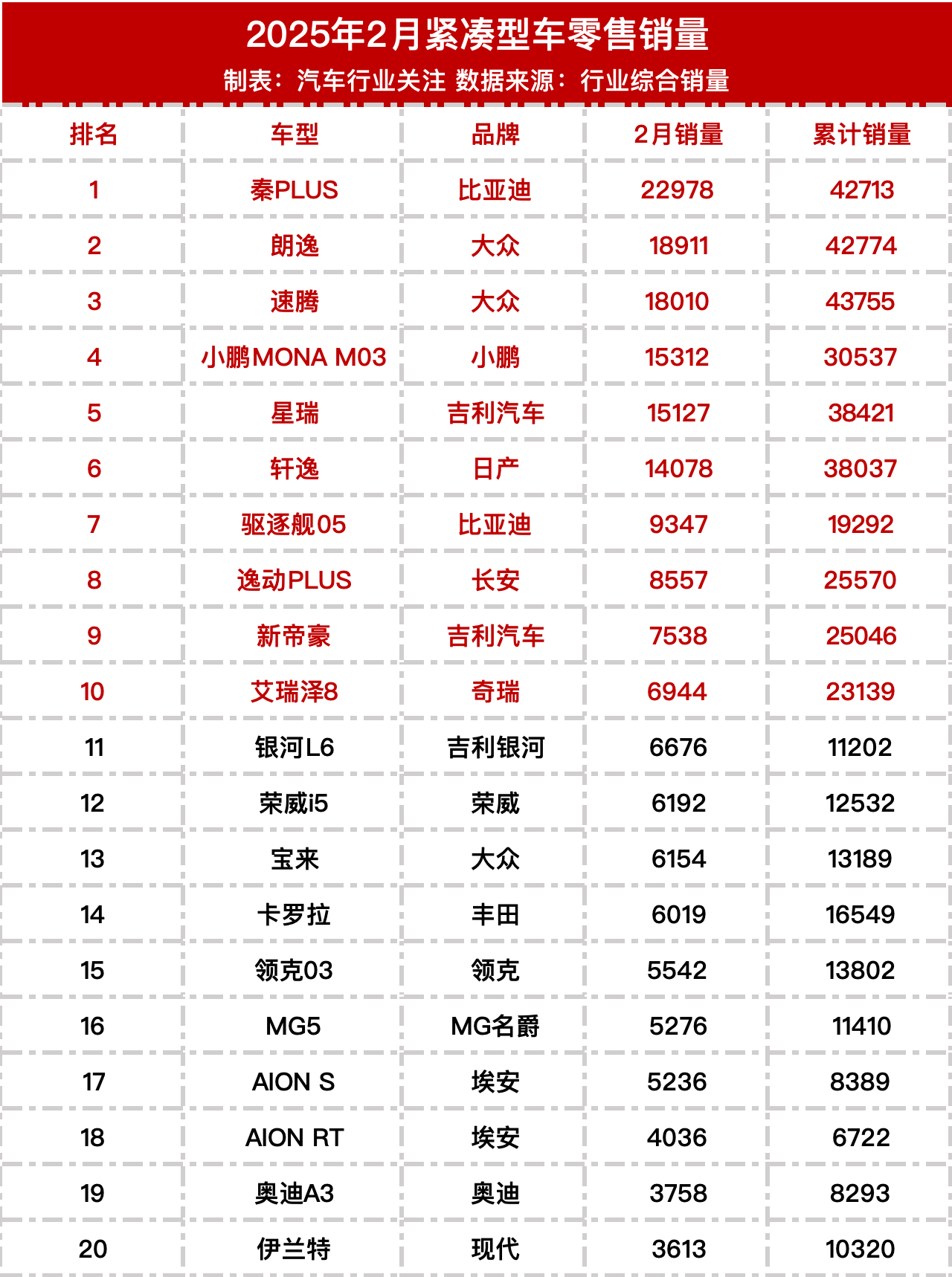 2025年2月轿车零售销量