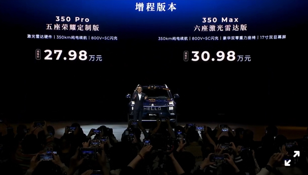 3月18日晚,广汽昊铂旗下——昊铂HL正式开启预售。新车共推出6款车型,其中,纯点版本车型预售价格为27.98万-32.98万元;增程版本车型预售价格为27.98万-30.98万元。