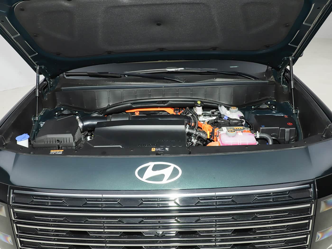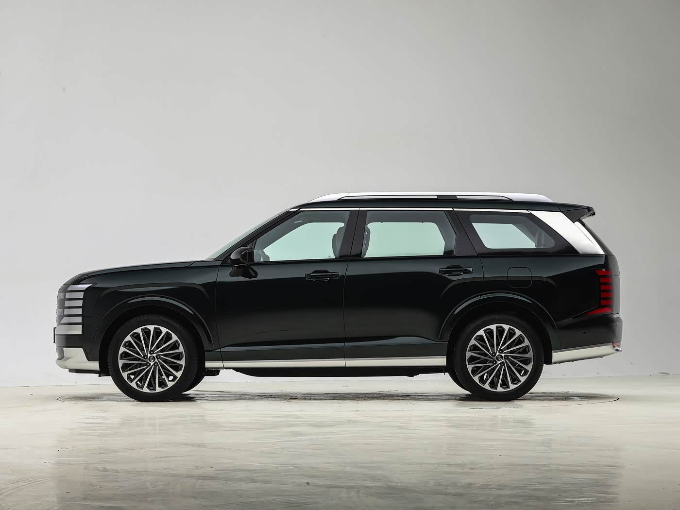 车身侧面,新一代帕里斯帝造型更加“硬派”,采用更多棱角线条元素,提供银色车顶行李架以及隐藏式黑色A/B/C柱、传统造型车门外拉手和多辐条式轮辋,营造出了悬浮式的车顶视觉感,同时辅以银色装饰条和行李架,让整车看山去更加修长。尺寸方面,新一代帕里斯帝韩版车型尺寸长宽高分别为5060/1980/1805mm,轴距2970毫米,与现款车型相比车长增加了65mm,轴距增加70mm。车尾部分,新一代帕里斯帝尾灯组与前大灯风格相呼应,换装隐藏式后雨刷和隐藏式排气,尾标下方带有产品英文标识,尾门右侧带有hybrid动力标识,车辆底部配备底挂式非全尺寸备胎。