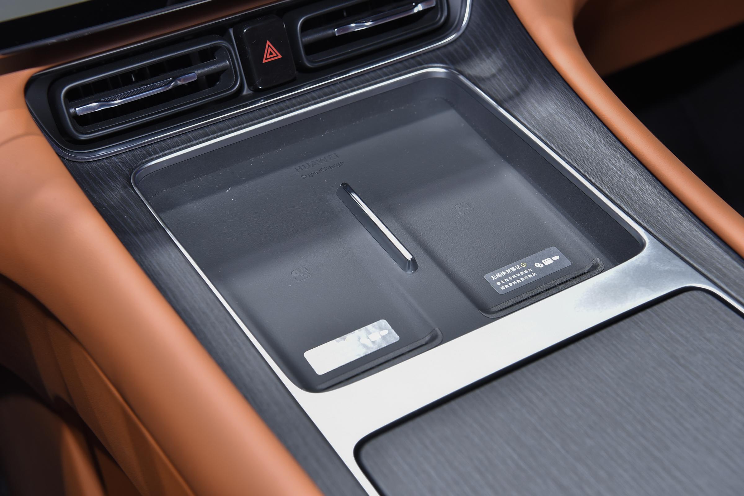 内饰方面,全新问界M7内饰采用全新设计风格,车内整体使用浅棕色材质包覆,中控台以黑色饰板贯穿式连接液晶仪表、16.1英寸悬浮式中控屏及内嵌式副驾屏,同时新车还提供了AR-HUD,中控台面上有HUAWEI SOUND音响装饰。新车换装问界M8同款三辐式方向盘及怀挡式换挡机构,中央岛台布局同步调整,提供手机无线充电面板及双杯托,并加入木纹饰板。