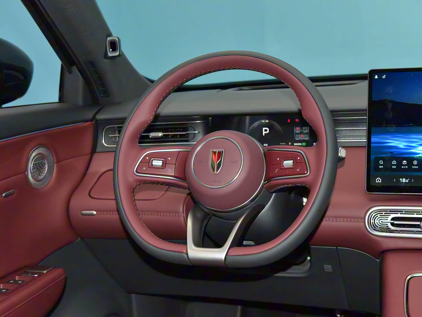 首先来看内饰,相比在售红旗新能源车型,红旗HS6 PHEV首次使用副驾双连屏设计,同步提供小尺寸液晶仪表盘和抬头显示系统。细节上,红旗HS6中控台为阶梯式设计,部分区域提供皮质包裹和缝线工艺,整体运用无实体按键的简约化风格,并在驾驶员侧设计有带盖板的小型储物槽。红旗HS6 PHEV采用三辐式造型和双拼皮质包裹,具有按压+滚轮的实体多功能按键。由于采用怀挡式设计,该车副仪表台区域可提供单手机无线充电板、双杯架和带有盖板的储物槽,副仪表台下部设计有掏空式储物空间。