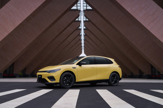 车身侧面,新车线条圆润饱满,采用溜背式造型设计,搭配无边框车门、隐藏式门把手、黑色外后视镜壳以及19英寸掠翼运动轮毂等设计,令车辆呈现出浓郁的运动气息的同时也兼顾时尚感。车身颜色方面,新车提供电掣黄、风驰灰、星夜蓝、摩根粉、星河银、金属黑共计6种颜色供消费者选择。其中,电掣黄、风驰灰为零跑Lafa5专属车色。