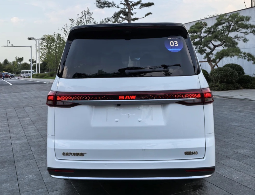 车身侧面,新车整体造型非常修长,营造出一种大气、豪华且不失现代感的视觉冲击力,车身采用高强度笼式结构,配备双侧侧滑门。尺寸方面,新车长宽高分别为5317/1870/1955mm,轴距为3200mm,定位中大型MPV,提供7座和9座两种座椅布局。作为参考,锐胜王牌M7长宽高分别为5240/1870/1950mm,轴距为3200mm。相比之下,新车长度和高度均有小幅增加,宽度和轴距则保持一致。车尾部分,新车整体造型看起来方方正正,尾灯采用贯穿式灯组设计,并加入了一根银色的镀铬饰条,提升尾部造型的精致度并拉伸车辆视觉宽度,“BAM”品牌标识也融入在灯组中央,夜间点亮极具辨识度。另外,新车还采用整体上掀式尾门布局,并可提供可选装电动侧滑门。排气方面,新车燃油版车型和增程版车型均采用隐藏式排气布局。