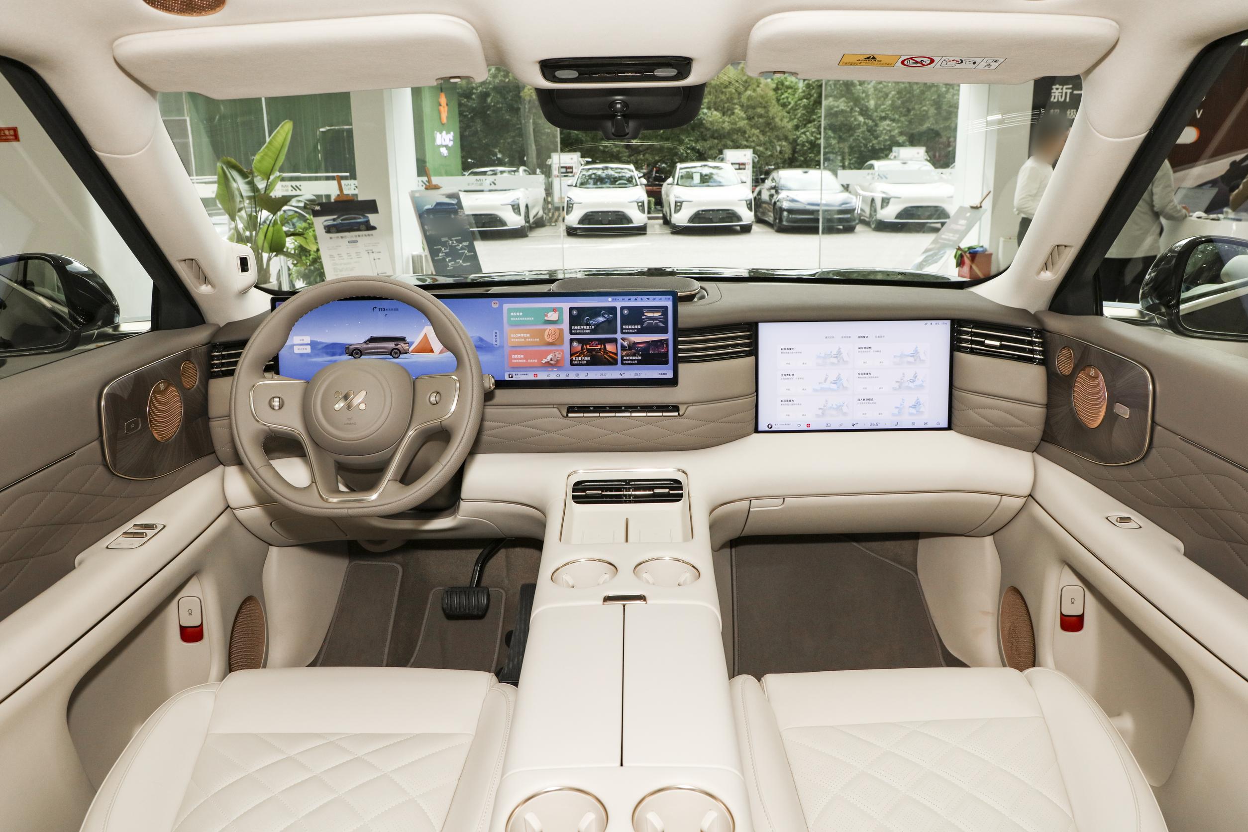 内饰方面,新车车内采用与全新智己LS6相同的全新设计风格,配备27.1英寸5K MiniLED中控双联屏+3K副驾娱乐屏,副驾前方则布置了一块内嵌式15.6英寸娱乐屏,配备HUD抬头显示系统以及360度全景影像,空调出风口采用贯穿式设计并展现出金属质感。辅助驾驶方面,新车全系标配520线超视域激光雷达以及英伟达Thor辅助驾驶芯片。座椅布局方面,新车车内采用2+2+2式的六座布局。其中,前排座椅靠背可完全放平,与后排座椅形成躺椅模式,第二排搭载两张独立座椅并配备大尺寸吸顶屏。