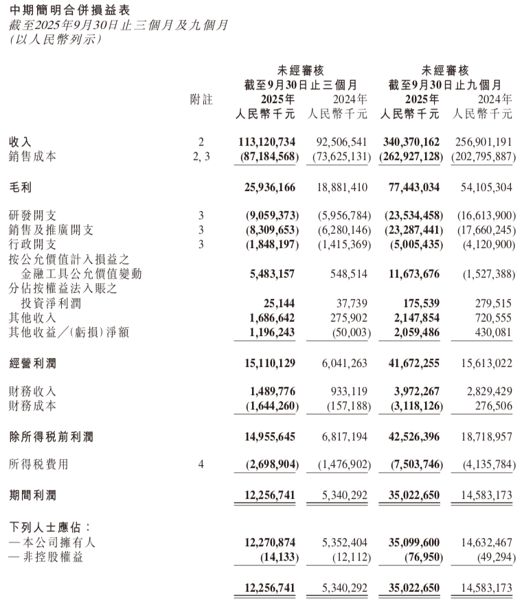 11月18日晚间,小米集团在港交所发布第三季度业绩报告。报告显示,2025年第三季度,小米集团总营收为1131亿元,同比增长22.3%,连续4个季度突破千亿;经调净利润为113亿元,同比增长80.9%,创历史新高。简单来说,今年三季度,小米集团营收和利润均创历史新高。小米集团业务主要分为两大板块,具体来看,2025年第三季度,“手机×AIoT”分部收入为841亿元,同比增长1.6%,连续9个季度实...