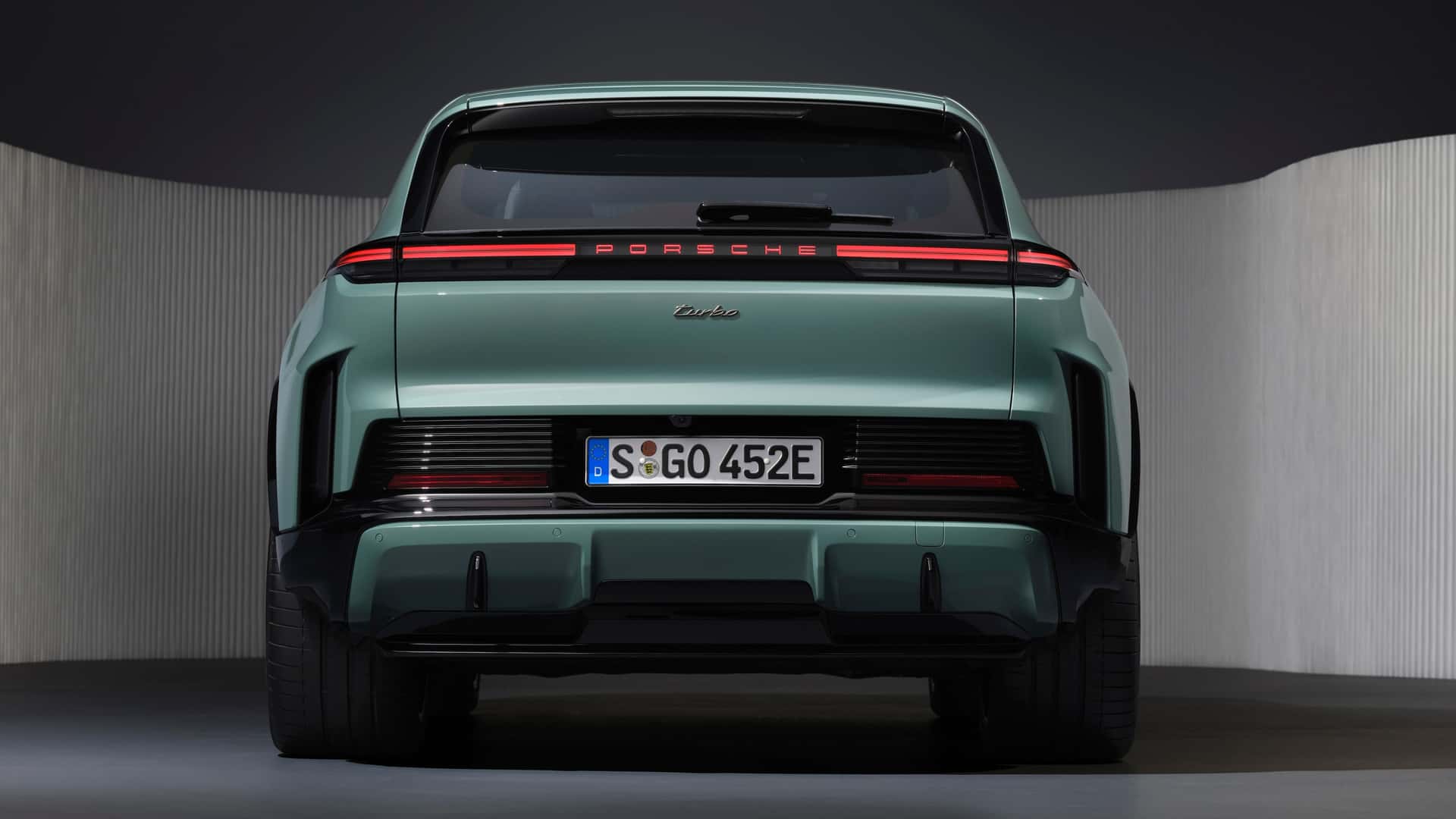 车尾部分,新车配备小尺寸的车顶扰流板以及内嵌高位刹车灯组,后窗雨刷器为外露式设计,尾灯组依旧是贯穿式的样式并搭配可发光的PORSCHE标识。后包围采用分层结构设计,并配备尾部扩散器装饰面板。值得一提的是,新车后包围两侧拥有两个半隐藏式的可伸缩导流板,可以在相应的时速下减小车身阻力。