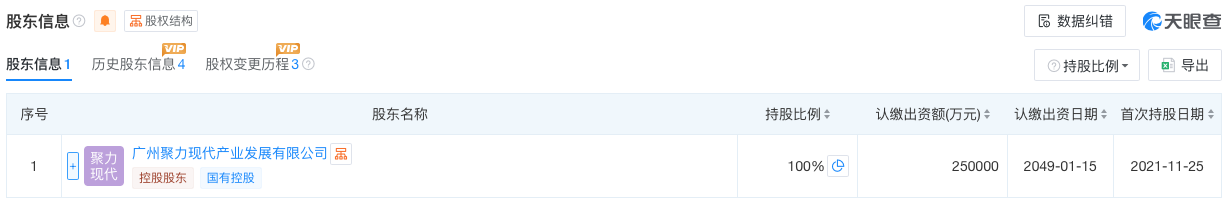 天眼查信息显示,恒大智能汽车(广东)有限公司、恒大新能源汽车(广东)有限公司两家公司发生工商变更,原股东恒大新能源汽车投资控股集团有限公司退出,新增广州聚力现代产业发展有限公司(下称“广州聚力”)为控股股东。股东信息显示,广州聚力对上述两家公司出资额分别为25亿元和50亿元,持股比例均为100%。天眼查公开信息显示,广州聚力现代产业发展有限公司于2024年10月成立,法定代表人为曾锋,注册资本为2...