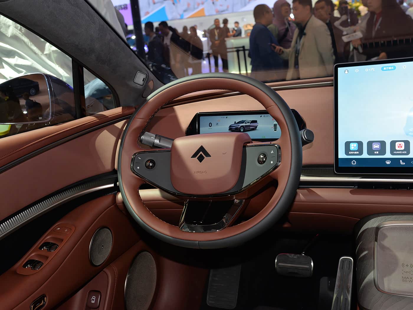 内饰方面,昊铂A800提供赤壁丹霞、多佛白崖、冷湖黑山三种内饰颜色,采用环抱式座舱设计,中控台上的金属装饰贯穿整个中控台并延展至车门,车内提供月晕氛围灯、琉璃氛围灯及反射式氛围灯。新车搭载12.3英寸全液晶仪表、27英寸W-HUD、15.6英寸中控屏,搭载鸿蒙座舱HarmonySpace 5提供双手机无线充电板以及怀挡式换挡机构等配置