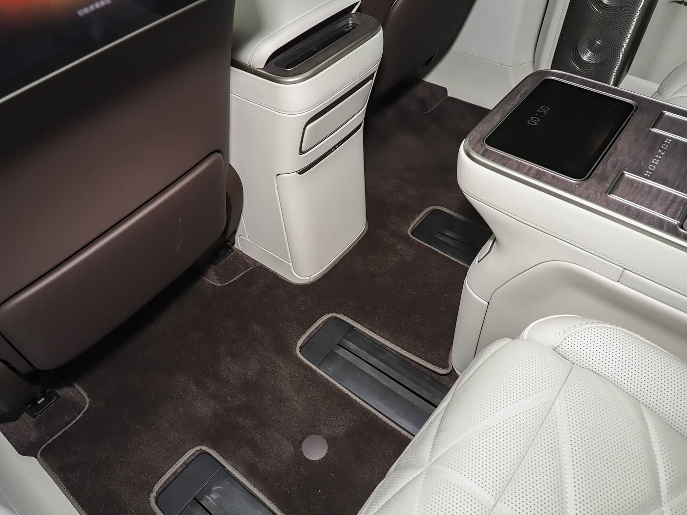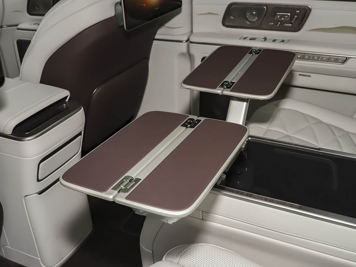 蔚来ES9的后排更是彰显行政级豪华定位,采用ET9同款“天空岛”与“行政桥”设计,前排座椅后部配备两个14.5英寸独立显示屏,中央设有8英寸中置控制屏,每个后排独立座椅均配备航空级小桌板。同时,Nappa真皮后排座椅支持舒适躺姿,加热、通风、按摩等功能一应俱全,兼顾商务接待与长途乘坐舒适性。
