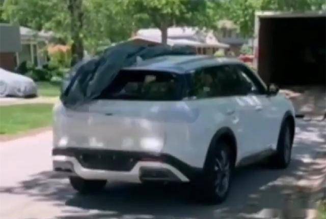 根据曝光图片来看,新车仅拍摄到车尾部分,不过由于是截图的原因,图片的清晰度不高,但基本可看出大致轮廓。从图片上仍然可以看到全新英菲尼迪QX60的路试车的外观还带有部分的伪装,它的尾灯的部分采用了伪装进行覆盖,外观上,采用了悬浮式的车顶的设计,新车的D柱采用了前倾式的设计,并采用了黑色的涂装。可以说与国内绝大多数国产车型造型相似。