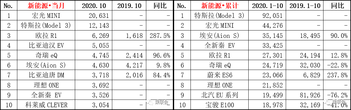 今年10月,多家新能源车企销量实现增长,包括上汽通用五菱、比亚迪、上汽乘用车和特斯拉中国等车企销量均超过万辆。其中,得益于宏光MINI EV的热销,上汽通用五菱新能源汽车销量达到29711辆。